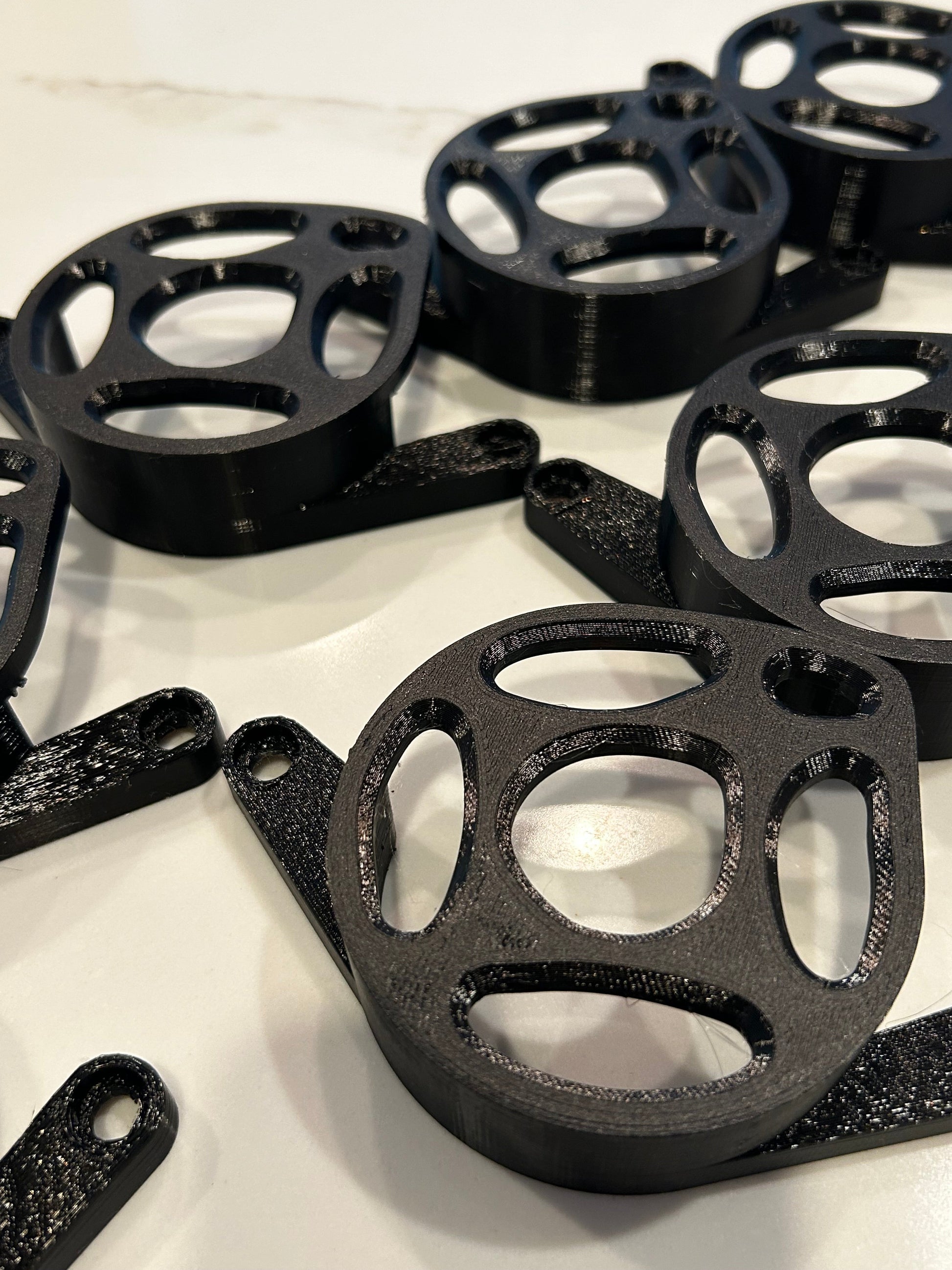 Quality made. Some are PETG while other colors are standard PLA however these mounts are make with a high infill meaning they are very dense. This helps increase strength and durability. The stock motor cover is plastic so why can't these be too?